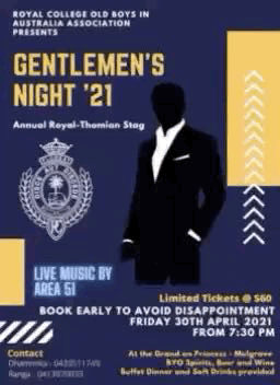 Thank you for purchasing your ticket to attend the 2021 Annual Royal Thomain Stag Night in Melbourne. We have attached your allocated 8 tickets. As you would appreciate a number of restrictions have been placed on the venue and us due to the covid environment that we are currently living in.